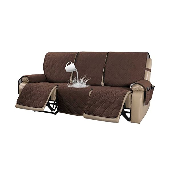 Turquoize 100% Waterproof Recliner Sofa Cover 3 Seat Reclining Couch Cover for 3 Cushion Couch Waterproof Recliner Sofa Protector Cover for Dogs Pets with Non Slip Backing and Strap (Large, Brown)