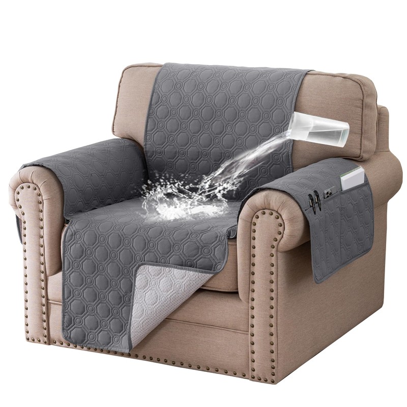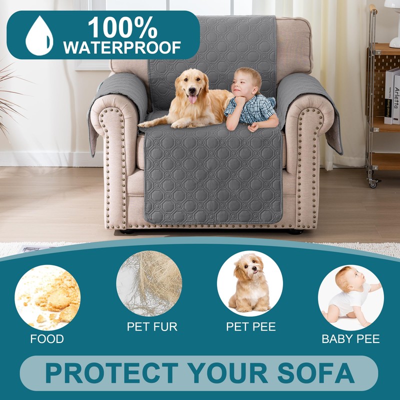 Turquoize 100% Waterproof Sofa Cover 1 Seater Triple Non-Slip Couch Cover Sofa 1 Seater Pet Friendly Sofa Slipcover Furniture Protector for Pets, Dogs, Kids (Small 23", Grey)