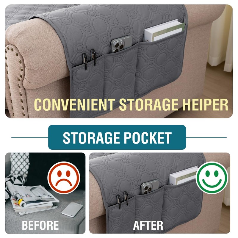 - AESTHETIC DECOR: The geometry diamond pattern adds gorgeous style to your furniture. Both side feature a warm microfiber fabric with unique quilted texture, safeguard your furniture from pet dander, dirt or scratches. Side pocket design for convenient storage of essentials like remote controls, keeping them within easy reach while maintaining a tidy living space