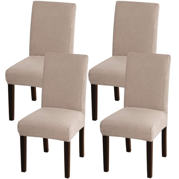 Turquoize Stretch Dining Chair Covers for Dining Room Set of 4 Chair Covers Slipcovers Chair Slipcovers Protectors Covers Dining Chairs, Feature Spandex Textured Checked Jacquard Fabric, Khaki
