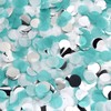 - This listing is for 1 pack of handpunched teal and silver white confetti/confetti turquoise silver white mix Made with 18 gramm high quality tissue paper.Each circle is 1" .Weight: approx 30 gramm/ per pack.