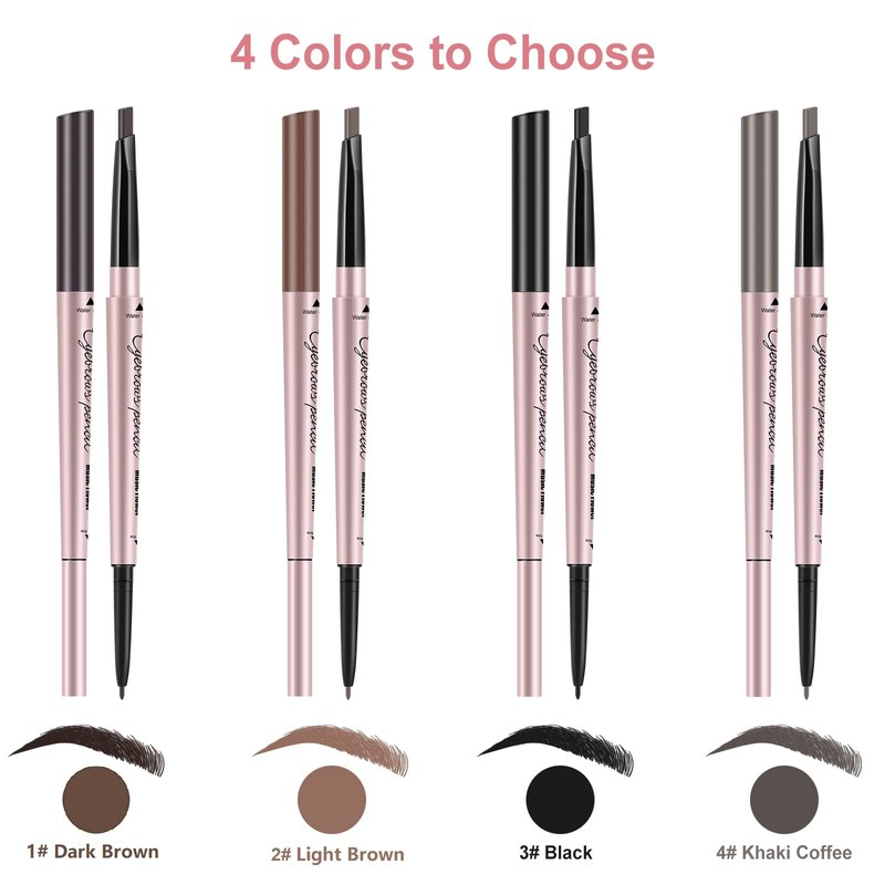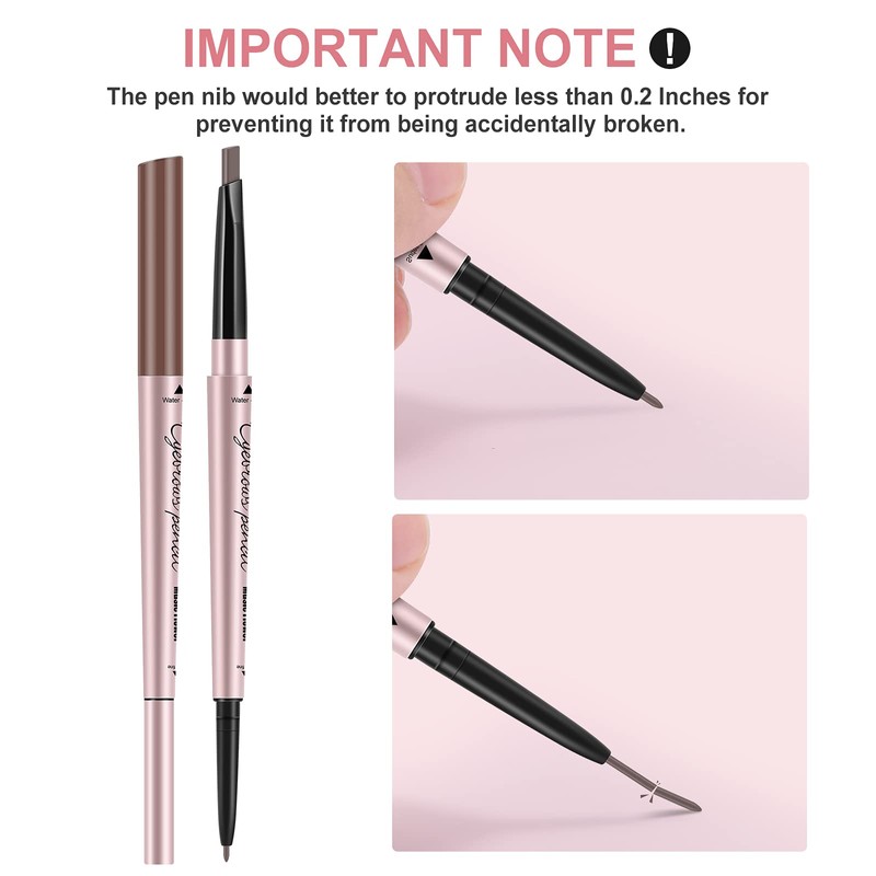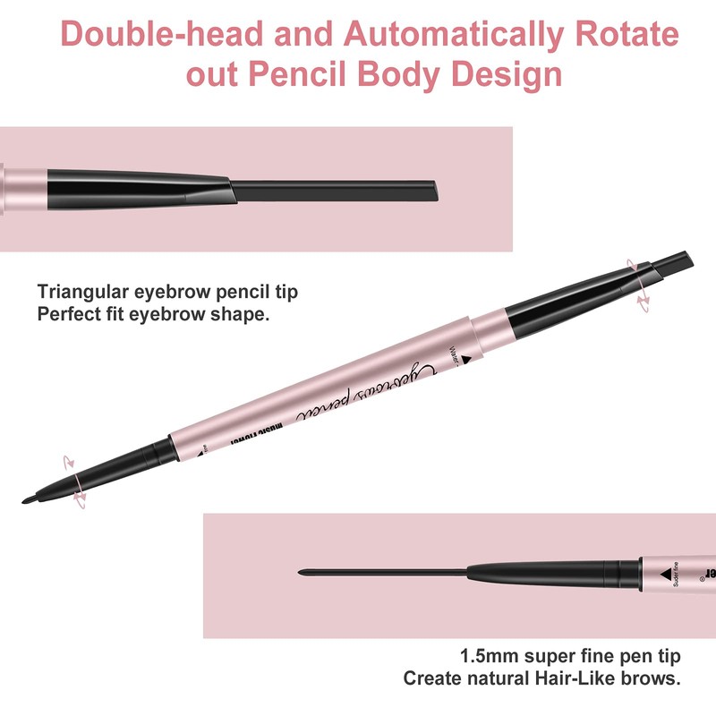 - 【Innovative Design】2-in-1 double-ended wax-based tip, mechanical rotation out and in body design; One side is a triangular brow pencil tip that perfectly fits the shape of your eyebrows and continues to apply color evenly inside; the other side is a 1.5mm ultra-fine pen tip that outlines your eyebrows, the precise tip can sketch natural hair-like eyebrows and easily create a natural 3D eyebrow shape.