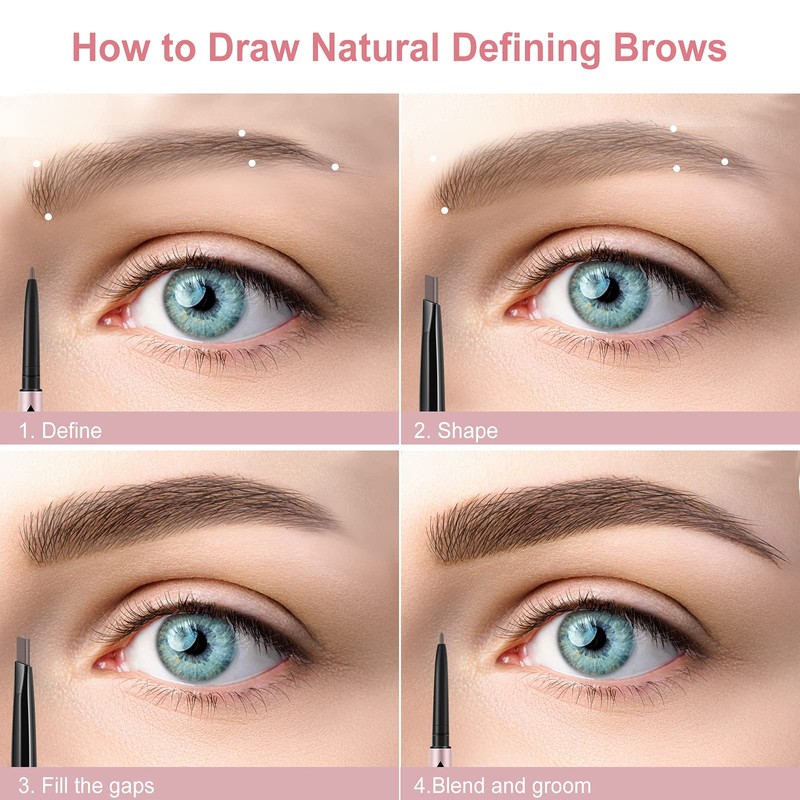 - 【Easy to Use】 Retractable eyebrow pencil, don't need to sharp, easy and convenient to use, can save more time than conventional one. The precise tip is used to define, outline and add depth and definition to the arch of the eyebrow; the angled end fits the shape of the eyebrow and continues to color inside to fill in sparse gaps; the brush is used to ground comb and blend the shape of the eyebrow.
