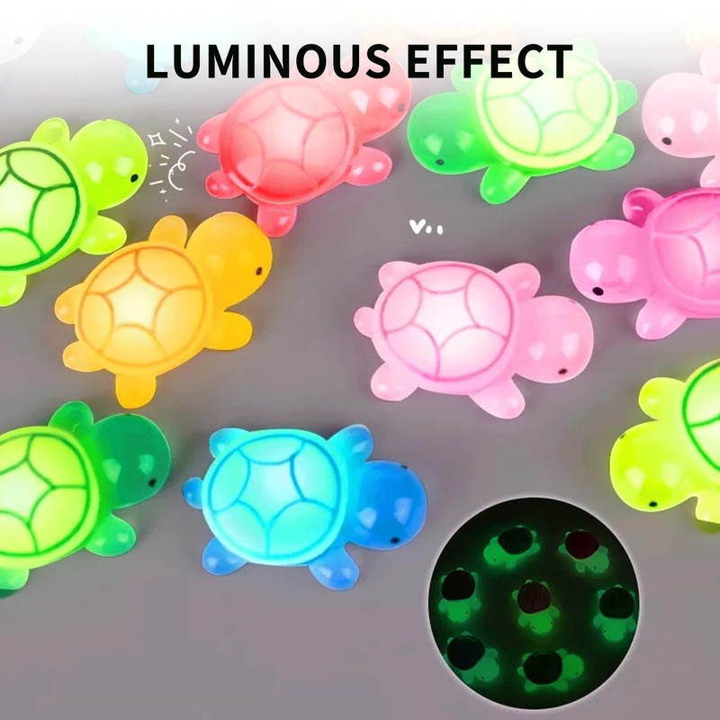 - Luminous Effects These mini turtles are not only eye-catching during the day, but also glow in the dark. This makes them particularly exciting for children who are looking forward to the play of light at night. They can be placed in the bath or in the children's room and create a magical atmosphere. Especially in the dark, they become a favourite toy during bathing.