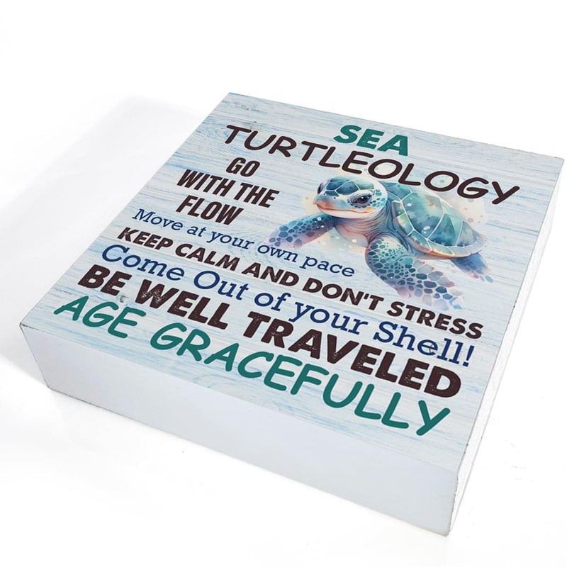 Turtle Sign Decor Sea Turtleology Wood Block Sign Home Beach House Desk Table Shelf Decoration