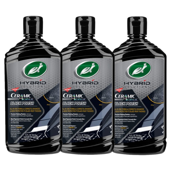 Turtle Wax Turtle Wax 53895 Hybrid Solutions Ceramic Acrylic Black Polish and Wax Formulated for Black Car Paint, Removes Surface Scratches and Swirl Marks, Provides Water Repellency, 14 oz (Pack of 3)