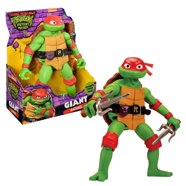 Turtles Mutant Mayhem Raffaello Tortoise Giant Version 30 cm Includes Battle Weapons for Ages 4 and Up - Giochi Preziosi