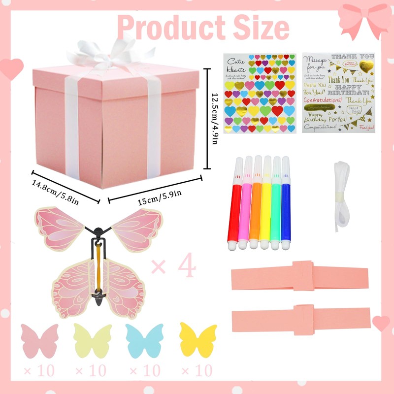 - 【Easy to DIY】The size of our butterfly explosion gift box is 5.7 * 5.7 * 5.7 inches. You can choose to put the right gift according to the size. At the same time, you can also DIY graffiti on the box according to your ideas and stick your favorite decorations on it to achieve an ideal and satisfactory effect. Our explosion gift box can be reused many times.