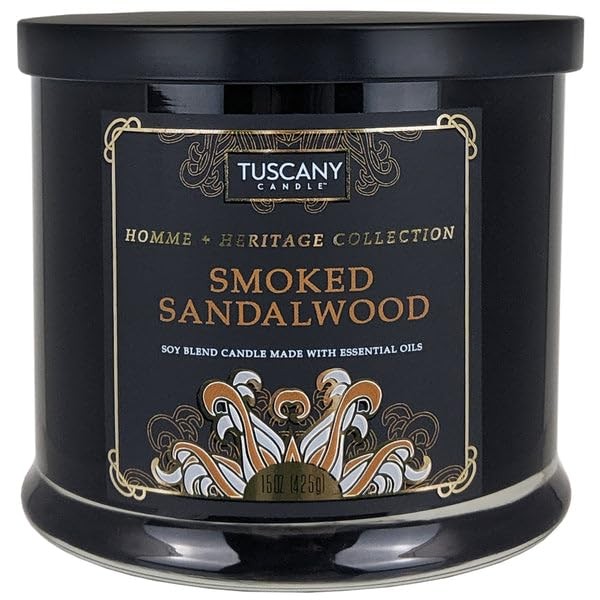 Tuscany Candle Homme + Heritage Scented Candle, Smoked Sandalwood, 15 oz