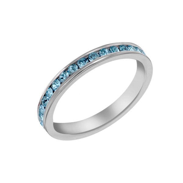 Tuscany Silver Women's Sterling Silver 2 mm Light Blue Crystal Eternity Stacking Ring, Size P