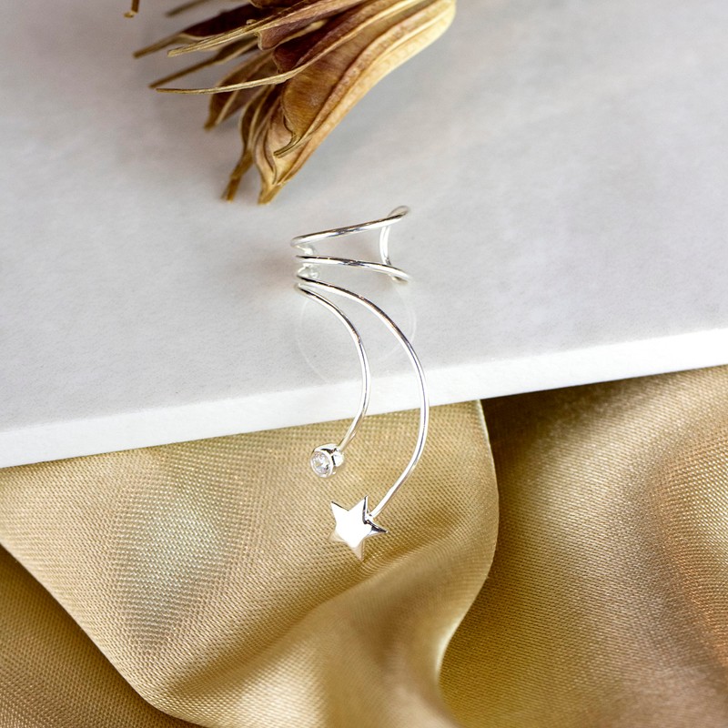 Tuscany Silver Women's Sterling Silver 3 mm Cubic Zirconia and Wire Leaf Ear Cuff, Silver, Cubic Zirconia