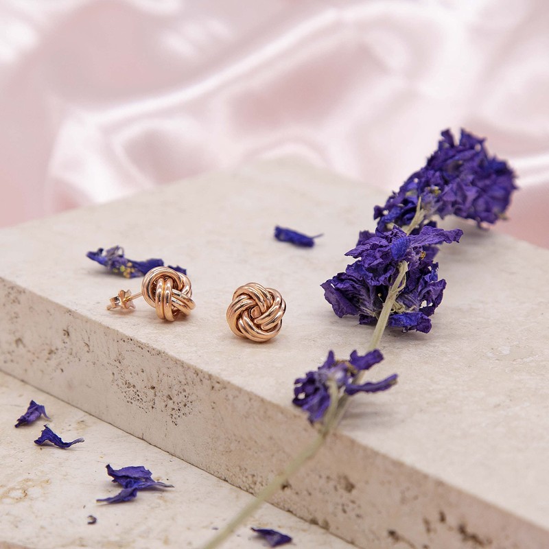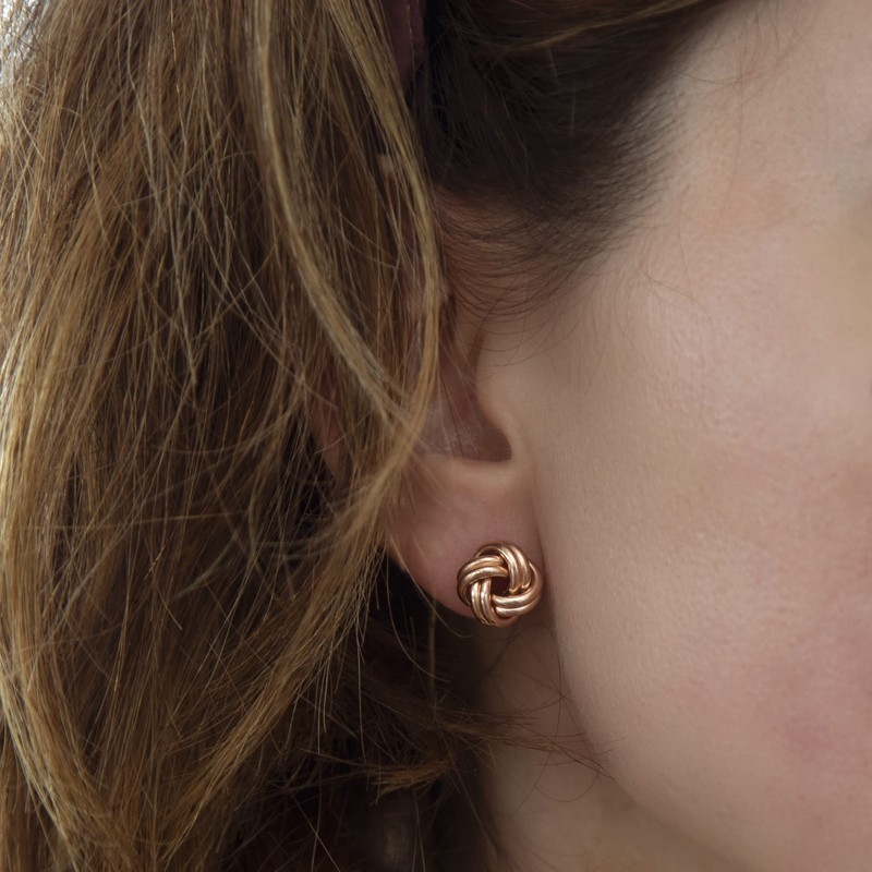 Tuscany Silver Women's Sterling Silver Gold Plated Knot Ball Stud Earrings 12 mm, Silver
