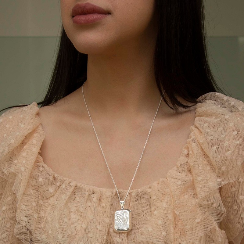 - THE FINER DETAILS: This is a Sterling Silver Large Rectangle 23mm x 44mm Engraved Locket Pendant and Rope Chain of 56cm/22"