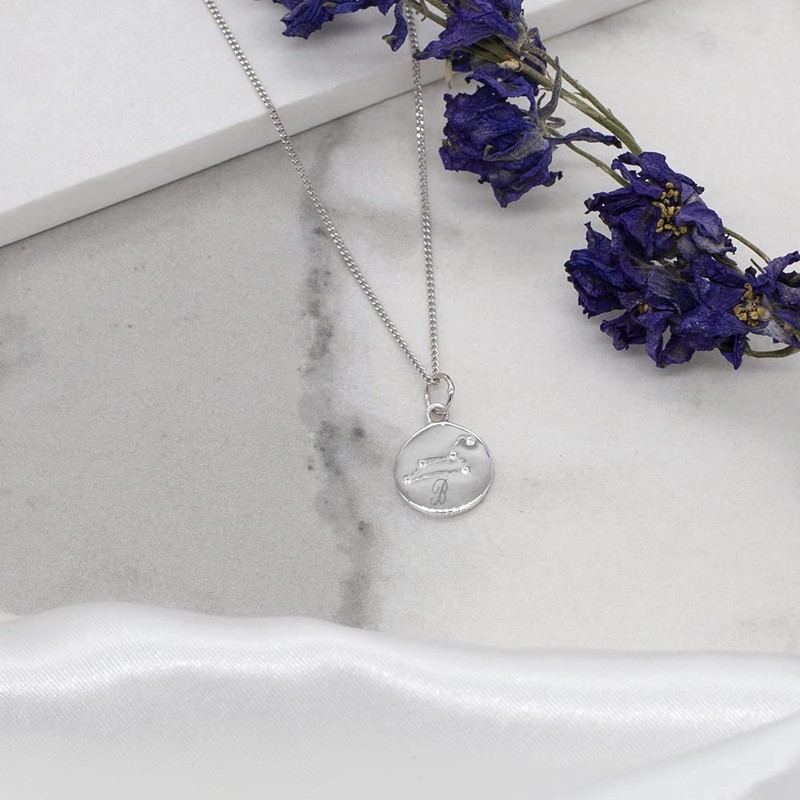 Tuscany Silver Women's Sterling Silver Necklace - Rhodium Plated CZ Constellation Pendant on Curb Chain - 46 cm / 18 Inch Engraving