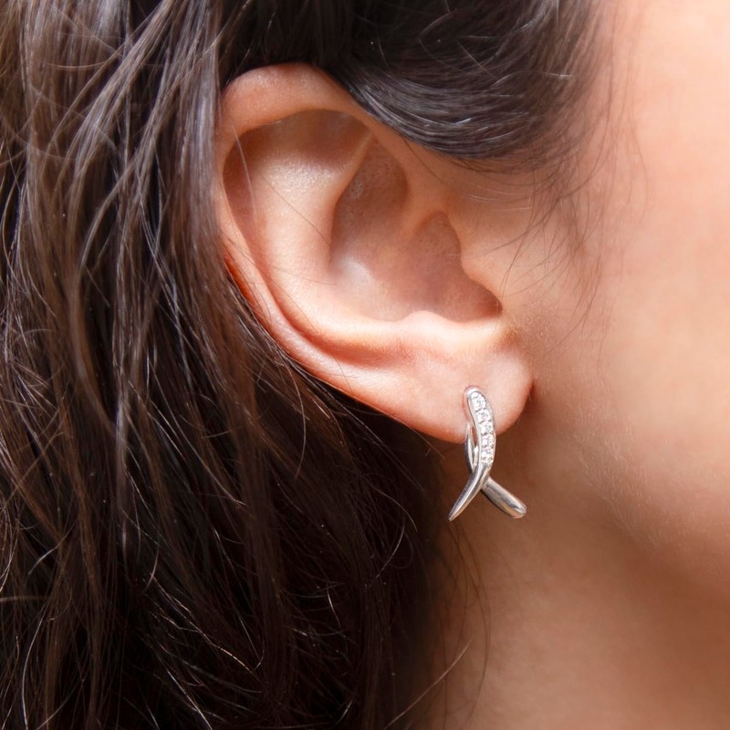 Tuscany Silver Women's Sterling Silver White Cubic Zirconia Ribbon Stud Earrings