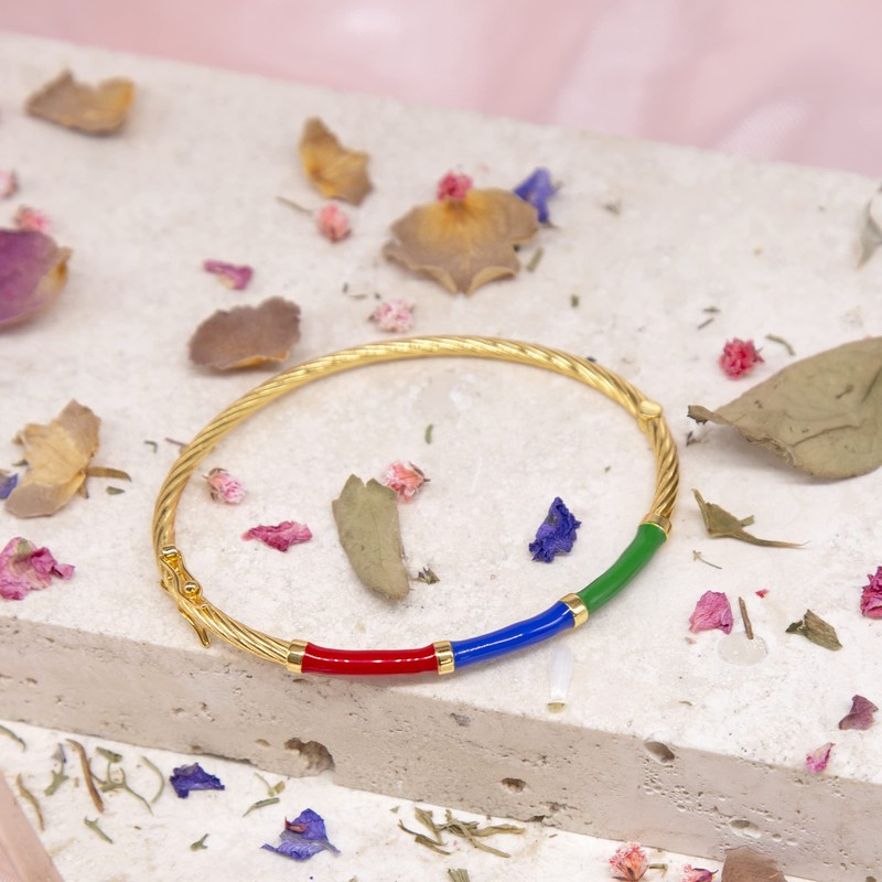 Tuscany Silver Women's Sterling Silver Yellow Gold Plated 3mm-4mm Red Blue and Green Enamel Bangle