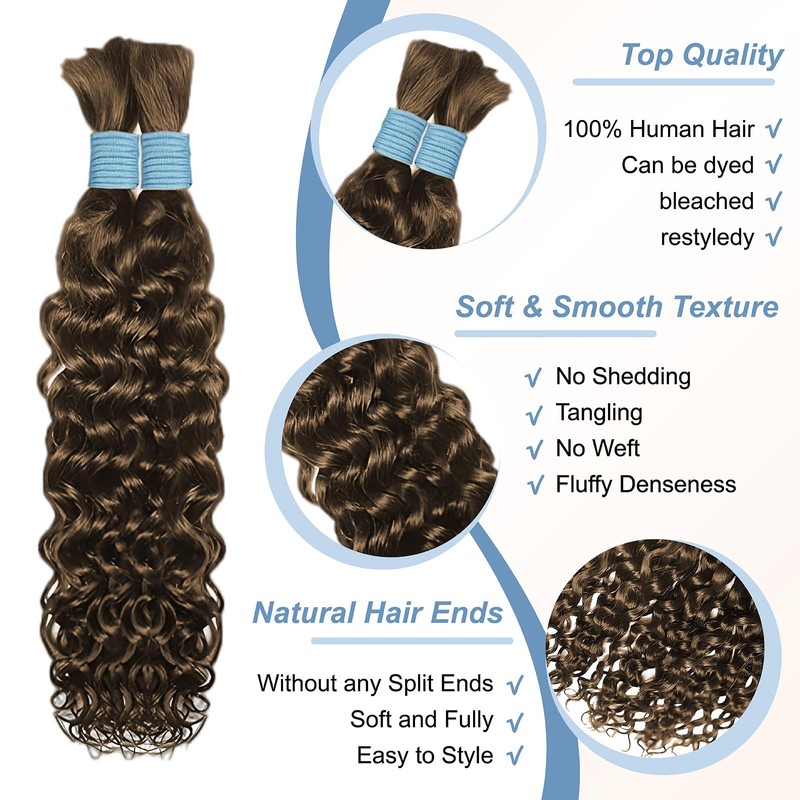 - WHY CHOOSE WATER WAVE HAIR AS HAIR BULK STYLE: Water wave human braiding hair is suitable hair extension for braiding; it’s small curly; very natural; beautiful; can be bleached and dyed; can be straightened; can be restyled as you like