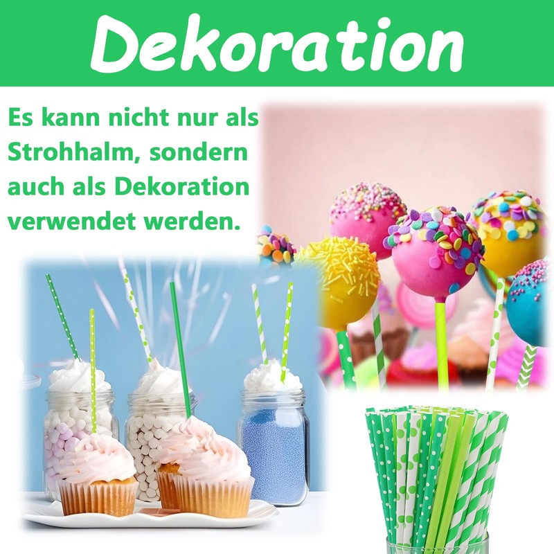 TuseRxln 100 piece paper straws are made of high-quality kraft paper material and have a stylish green and white striped design. Suitable for hot and cold drinks, suitable for various parties and wedding occasions. The product is durable, non-toxic and environmentally friendly, ensuring safe use.
