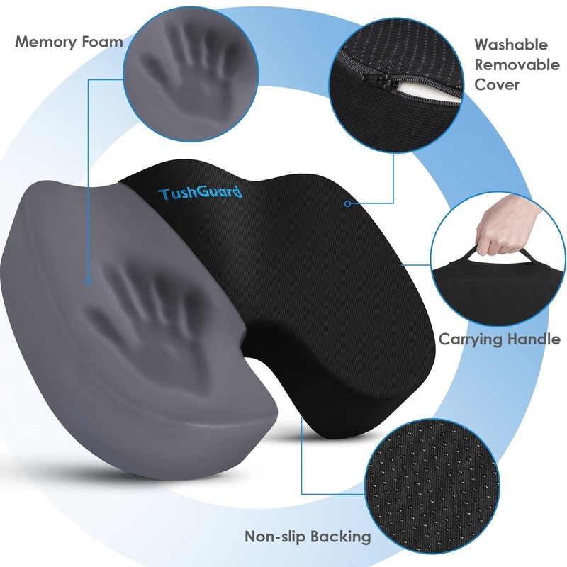 TushGuard Seat Cushion for Office Chair Memory Foam Non-Slip Desk Seat Cushio...