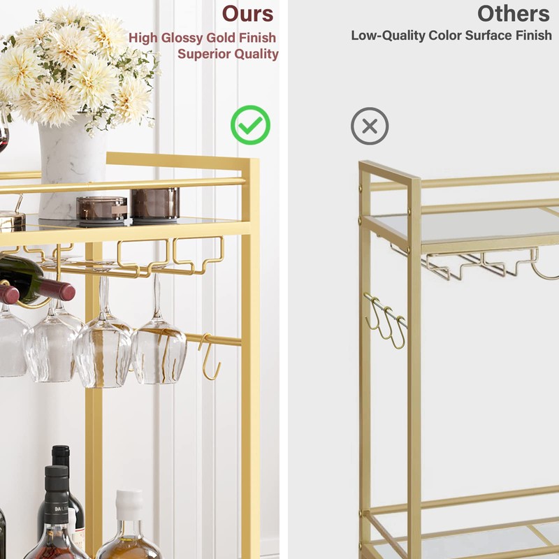 TUTOTAK Bar Cart, Serving Cart for Home, Drink Cart, Mobile Kitchen Shelf with Wine Rack and Glass Holder, Rolling Beverage Cart, Gold BC01BB031
