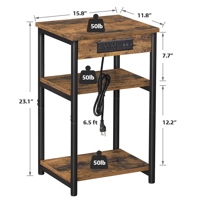 - [End Table with Charging Station] This side table with 2 AC outlets, 2 USB ports, and the 6.5 ft extension cord helps you charge your phone, tablet, lamp, and game console at the same time. Also, the distance between each outlet and port prevents adapters from blocking each other.