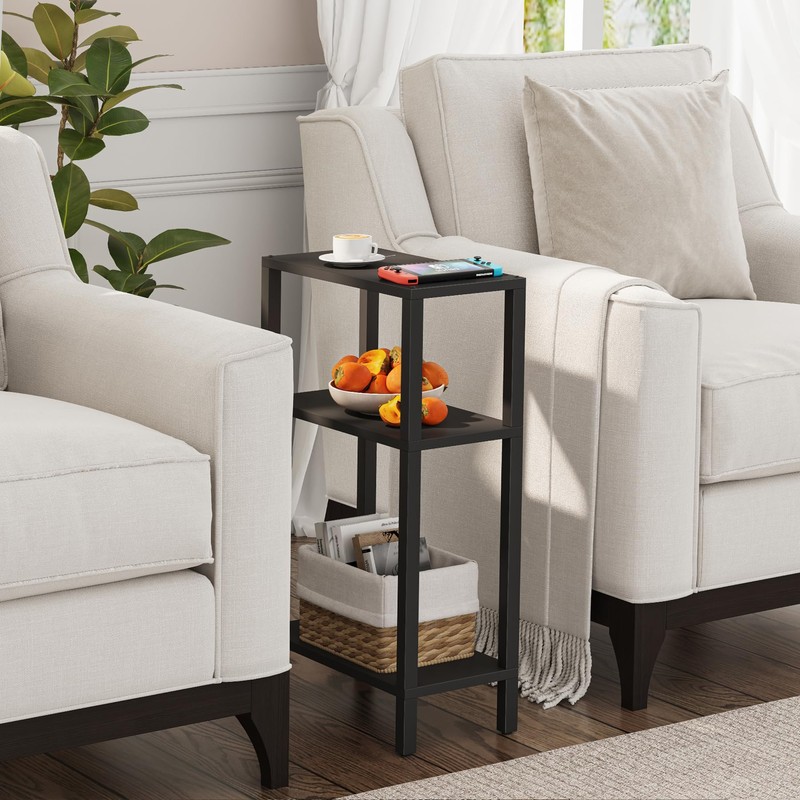 TUTOTAK Small Side Table, Narrow End Table, Skinny Sofa Table, Slim Nightstand, Couch Table, Living Room, Bed Room, Black TB01BK0772
