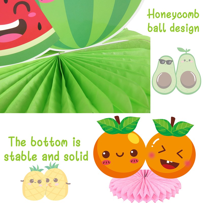 • ❤【Tutti frutti party table honeycomb centerpieces】With these vibrant colors and vivid fruit patterns are printed on both sides, these multi colors fruit themed party decorations extra-specially sparkle to your party table. Pair this table centerpiece with other party supplies from our store to create a festive look for your summer fruit party decor.