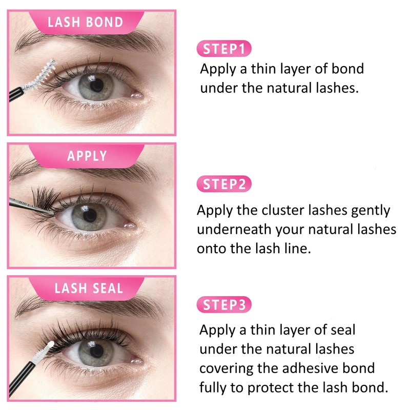 - ★ Our Cluster lashes are made with a clear band (not a black band) to create the most natural look possible.