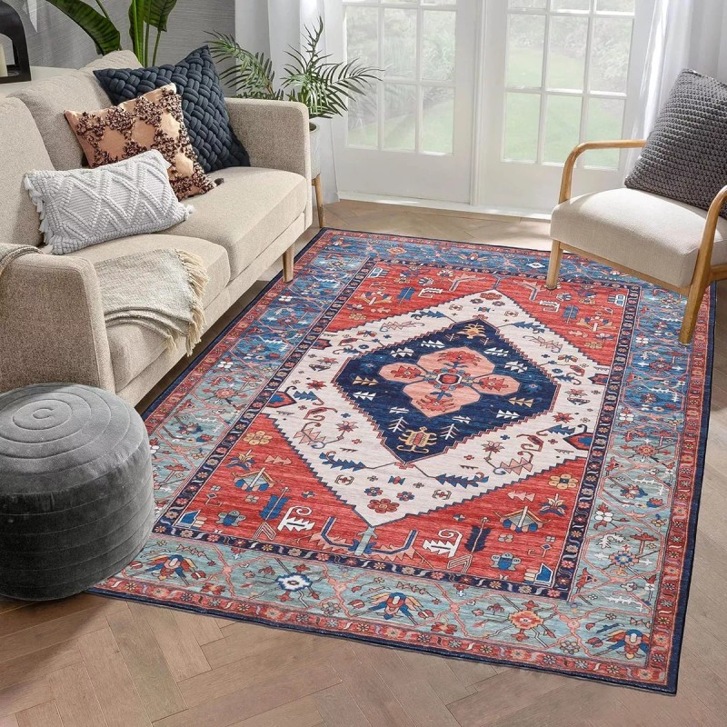 Alfombras bohemias para recámara, alfombra de área de 160*120cm pulgadas para sala de estar, lavable a máquina, antideslizante, de pelo bajo, alfombra de cocina, alfombra Lagre, alfombra persa envejecida para baño, oficina, lavandería, comedor
