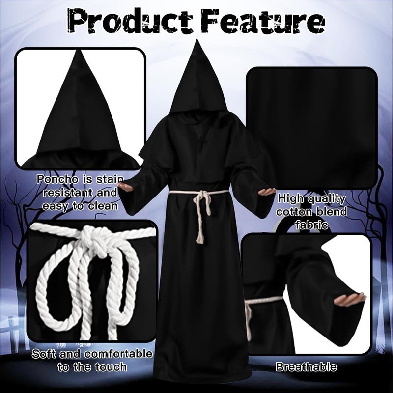 - Versatile uses: the priest costume with hood is perfect for Halloween, fancy dress, Easter, masquerade, carnival parade, theatre, theme party and other occasions. With this robe, you can make a great impression at the party.