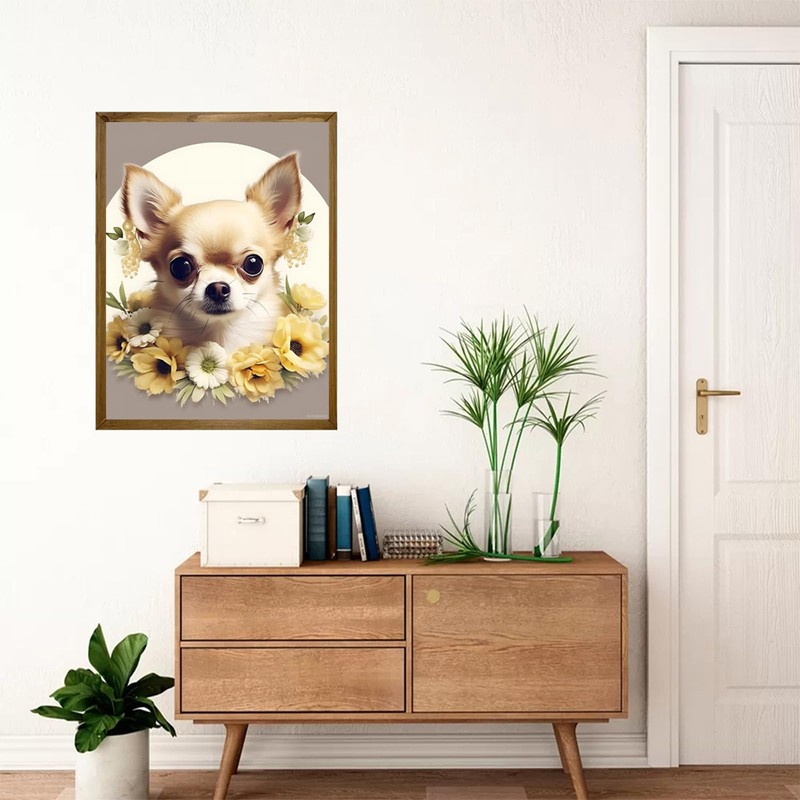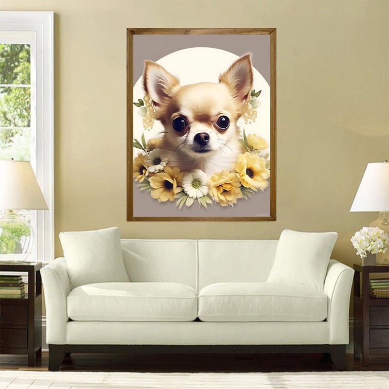 TUTUMAY21 Diamond Painting Kits Beauty Chihuahua Wearing Flower Crown, 5D DIY Crafts for Adults Diamond Art Kits, Full Drill Round Gem Painting Kit Paint with Diamonds Dots, Gifts 12x16inch