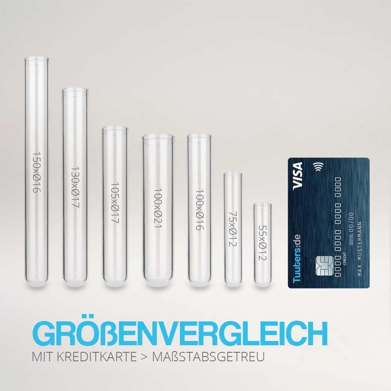 - Dimensions: height = 100 mm / diameter = 16 mm / wall thickness = 1 mm / inner diameter = 14 mm / volume = approx. 12 ml. Inner gradient minimally conical