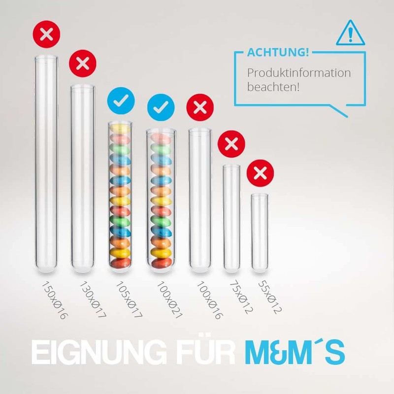 - Box contents: this affordable set includes 100 plastic test tubes with press corks, free of charge: 8-10 extra corks