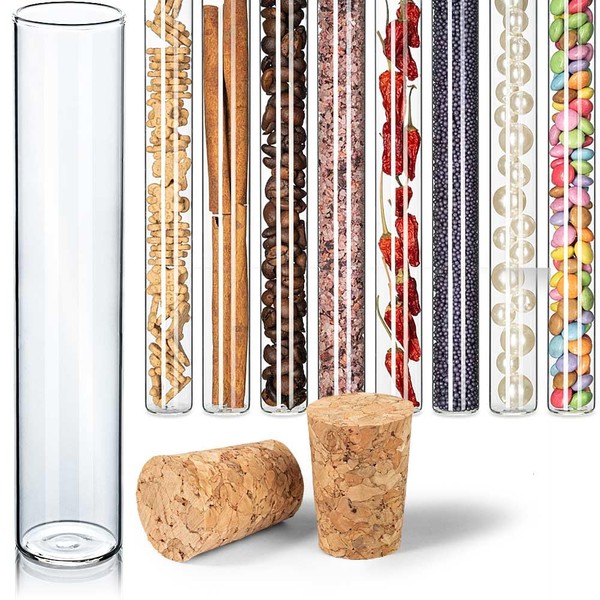 - Box contents: 25 test tubes with flat base including perfectly fitting pressed cork. Suitable for food, reusable and sustainable