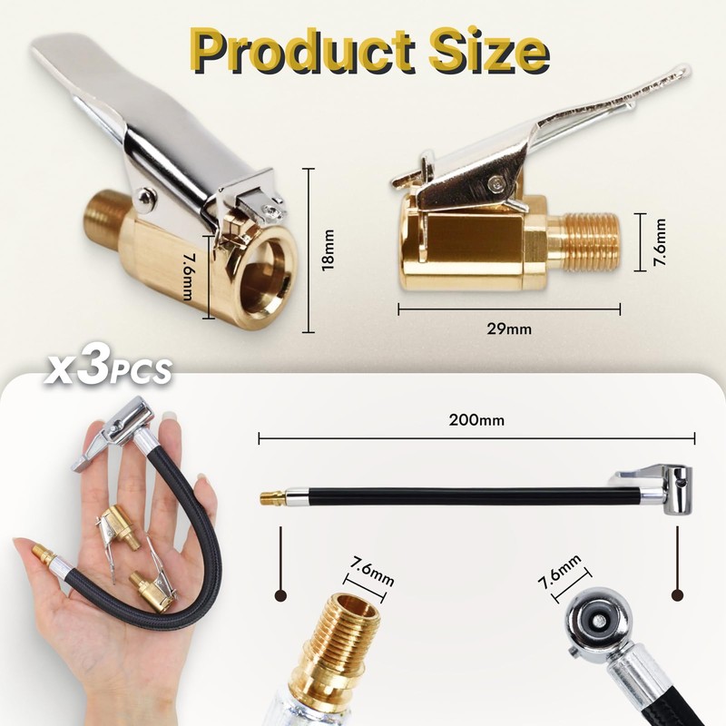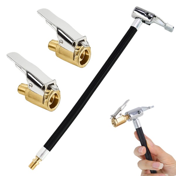 • VERSATILE VALVE EXTENSION KIT WITH ACCESSORIES This kit includes 1×20cm tire inflator hose as well as 2×8mm car valve adapter with lever plug. The high-quality valve extension is ideal for quickly inflating tyres and air devices - whether in the car, bicycle or motorcycle.