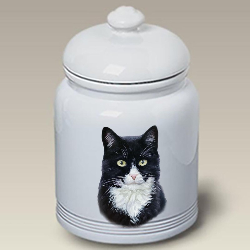 Tuxedo Cat - Best of BreedDog and Cat Ceramic Treat Jar 9" Tall Air Tight Seal All White
