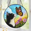 Tuxedo Cat Gifts, Black & White Cat Memorial Suncatcher Gift for Loss of Cats, Butterfly Stained Glass Suncatcher Window Hanging Garden Decor, Pet Loss Gift Christmas Sympathy Gifts for Women