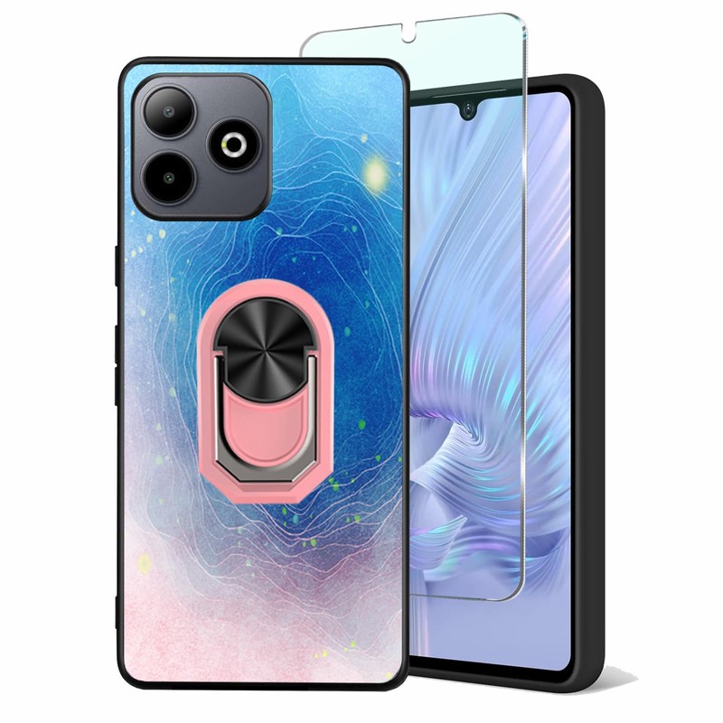 Tuxiwei for OSCAL Flat 2 Case Soft TPU, With OSCAL Flat 2 Tempered Glass Camera Lens Protector+360° Rotatable Ring Holder Stand [Blue-Pink Gradient Starry Sky Art Design] Cover For Magnetic Car Holder