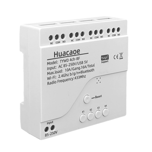 - Easy to set up: The Huacaoe 4CH 5V relay switch module is specifically designed for Tuya smart home, 433Mhz RF, Bluetooth remote control, WiFi instant point-to-point relay self-locking switch applications. It can operate at DC 5V or AC 85-250V, supports the use of Bluetooth remote control or 433Mhz RF control, and is compatible with fixed code 433Mhz RF. Once the Tuya Smart Living app is installed and configured, you can easily control and monitor your smart home even when you are temporarily disconnected from Wi-Fi.