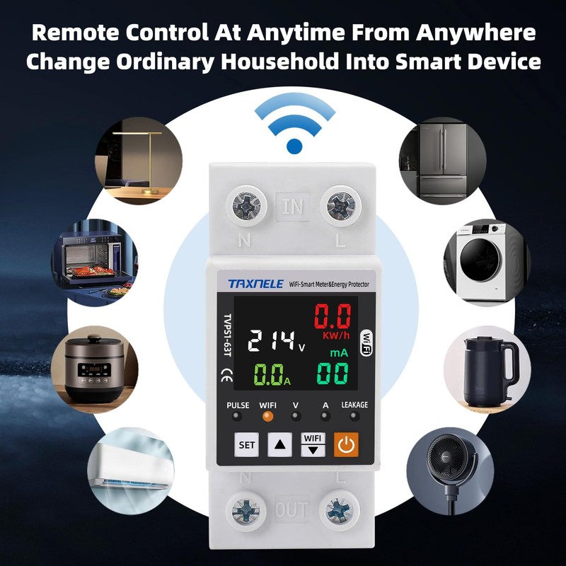 TUYA WiFi Smart Energy Meter AC 63A 85-300V WiFi Smart Earth Leckage Über Unter Spannungsschutz Strom Energie Monitor APP Fernbedienung Smart Life 230V 110V Kompatibel mit Alexa Google Home