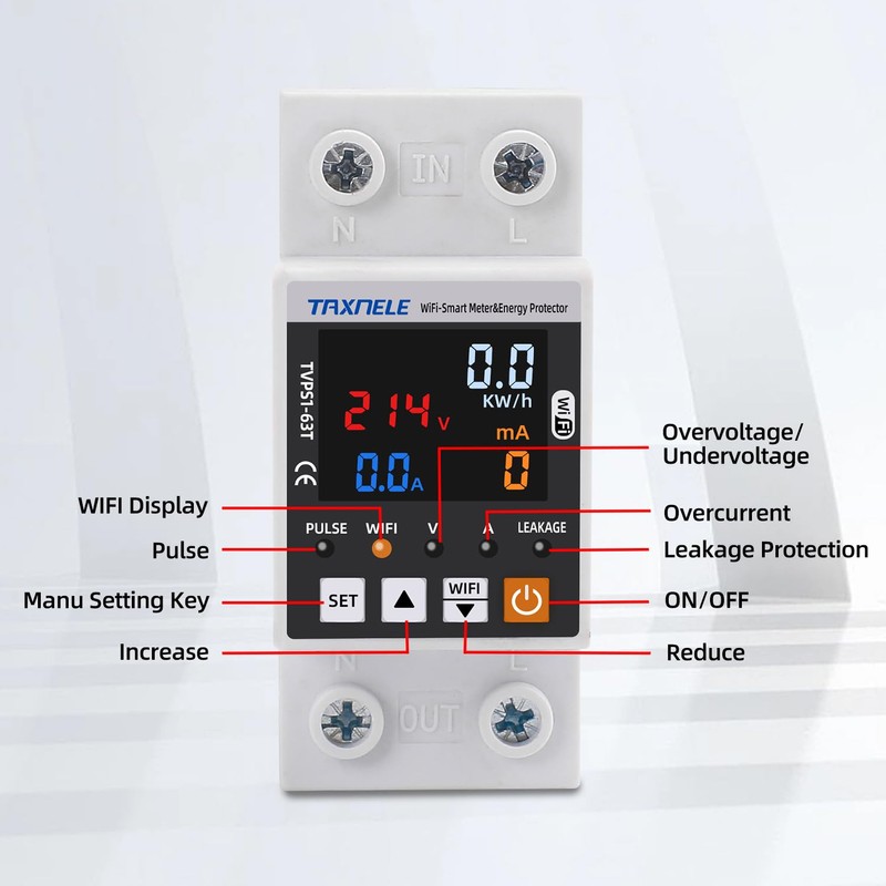 - 【Multifunktions-Energiezähler】 Das Multifunktions-Elektrozähler ist entworfen, um den Stromverbrauch zu überwachen. Ausgestattet mit einem großen LCD-Display, das Spannung, Strom und Leistung anzeigt. Benutzer können einfach Über-/Niederspannung, Strombegrenzung, Leckstromalarm und Wiederverbindungszeit konfigurieren.