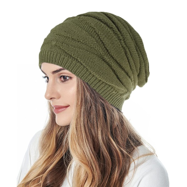TuYines Women's Winter Beanie Women's Lined Women's Hat Winter Knitted Hat Women's Beanie Chunky Knit Warm Beanie with Inner Lining, Grass Green