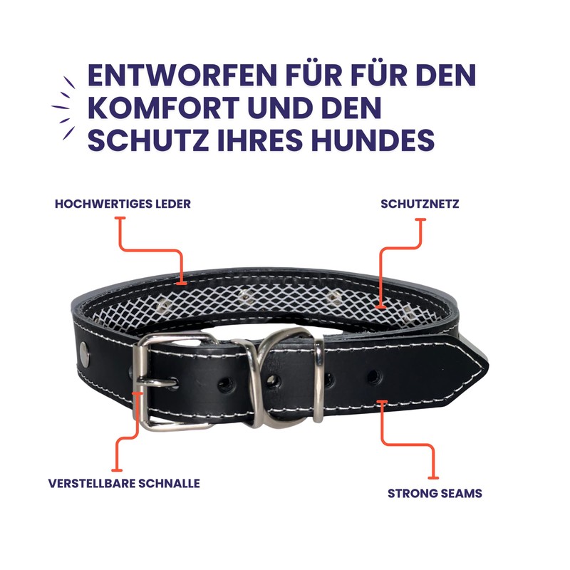- Protection and safety guaranteed, confirmed by veterinarians. This exclusive leather dog collar not only protects the flea collar dogs from damage, dirt and breakage, but has also been tested by veterinarians to ensure that your dog is always protected.