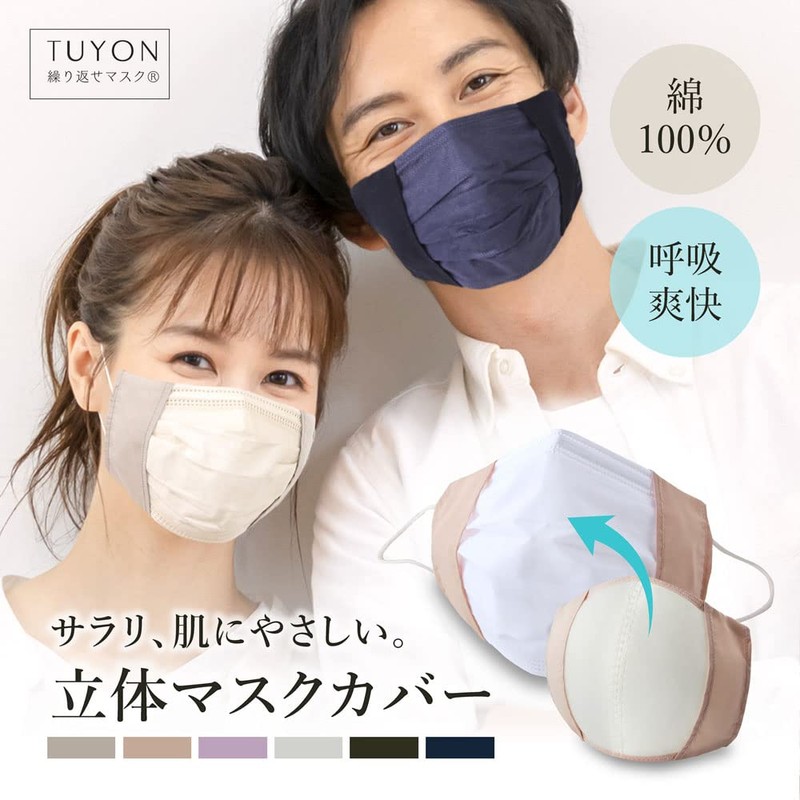 Tuyon T89 3D Mask Cover, Non-woven Fabric, Prevents Skin Rashes, Double Mask Protection, Cooling Fiber, 1 Piece, 100% Cotton, Washable and Reusable, UV Protection, Regular Size, 3D Construction, Breathable (Greige)