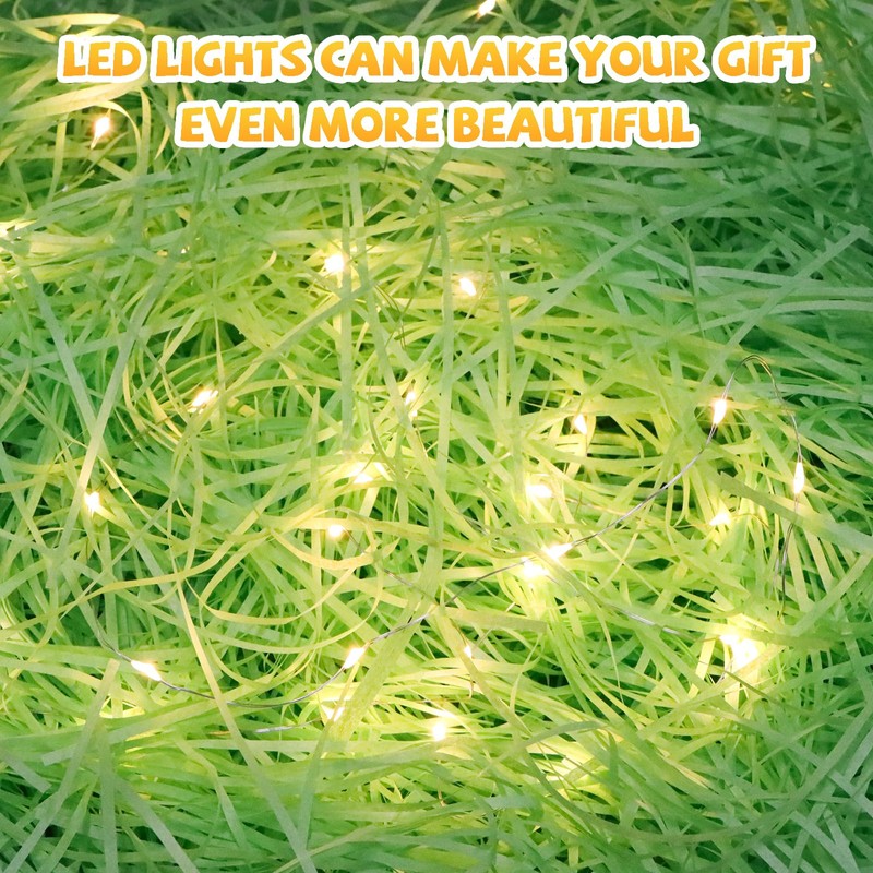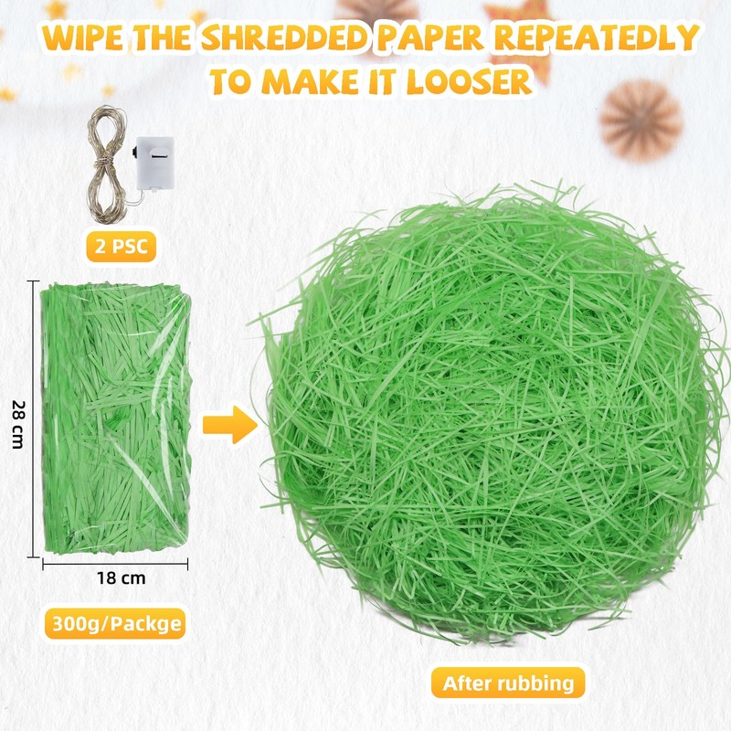 TUZELIYA 300g Shredded Tissue Paper, Shredded Paper with led light for Gift Boxes, Easter Basket Grass, Ideal Hamper Filling and Shredded Filler for Easter, Party Supplies Decoration Green