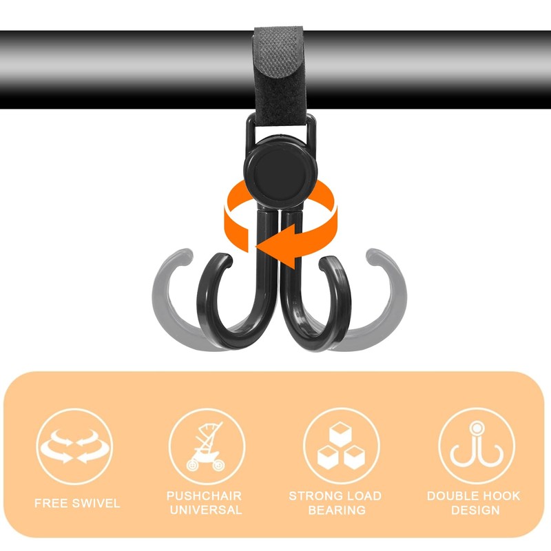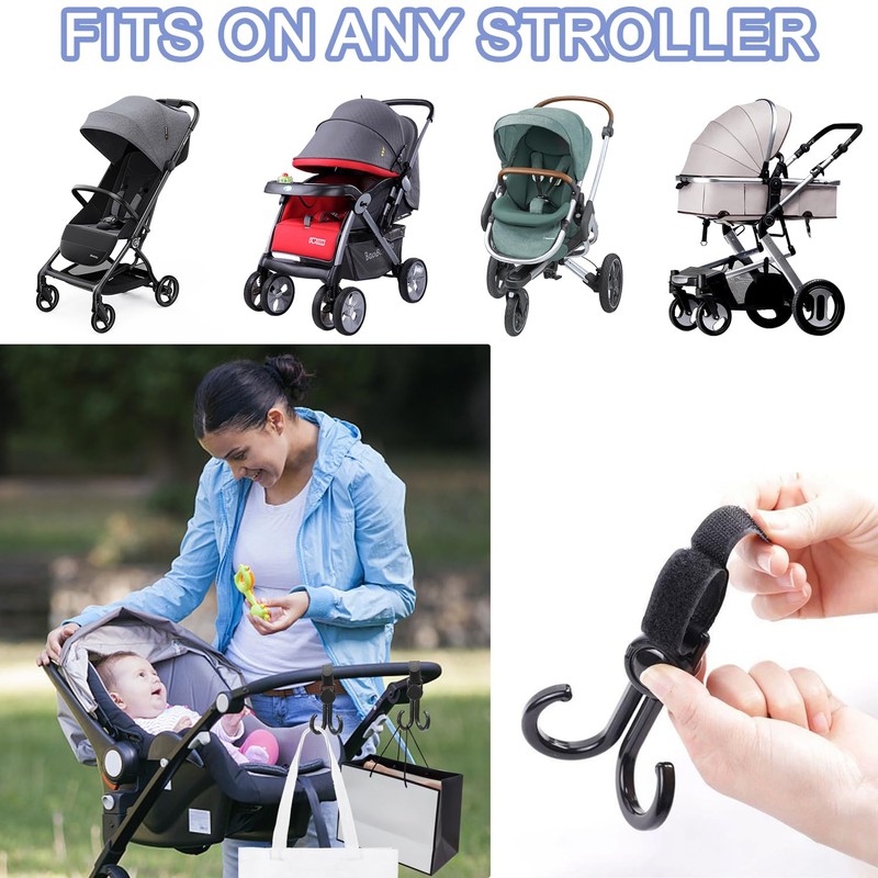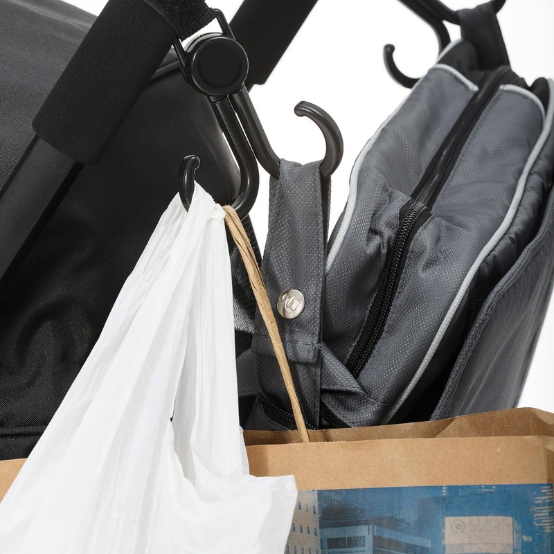 - Comfortable and easy: with the pram carabiners you have your hands free for all the things you need to do! The double hooks can be attached together or individually so you can quickly and easily hook in and out a diaper bag or shopping bag.