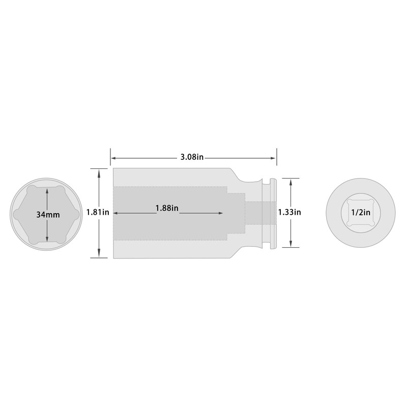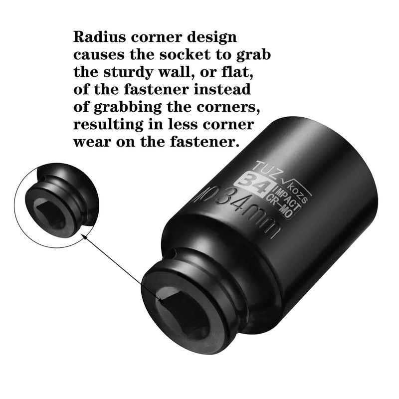 - 1/2 Inch Drive 34mm impact socket is designed for use with powered impact wrenches or drivers, Please make sure the socket you are purchasing is compatible with your tool, such as an air impact wrench,Electric Impact Wrench, ratchet or other type of turning