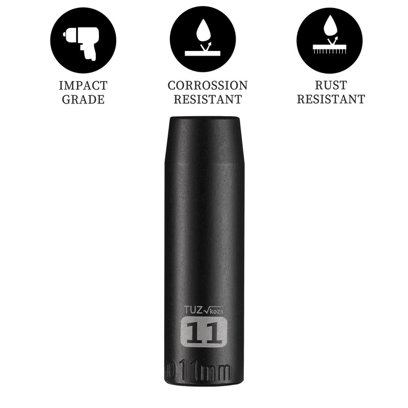 - TUZkozs Socket is engineered with industrial-grade Chromium Molybdenum (Cr-Mo) steel, and have a carbonized exterior brings more corrosion and wear resistance, so it can be standed greater impact force