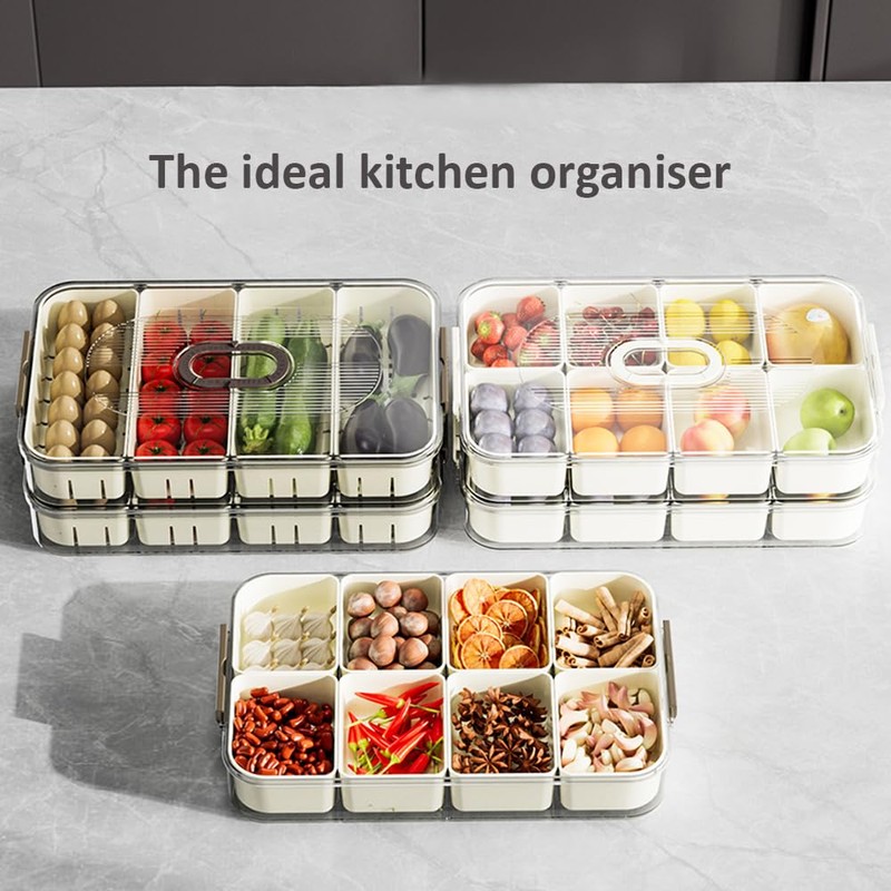 - ใ๐๐ง๐๐๐ฉ ๐๐๐ฉ๐๐ง๐๐๐กใ Made of great PET and PP material. Compartments are made of PP material and the box is made of PET, they are all food-grade, which can effectively resist stains & dust. Adopts a highly transparent design, allowing you to easily find what you want & keep vegetables and fruits fresh.