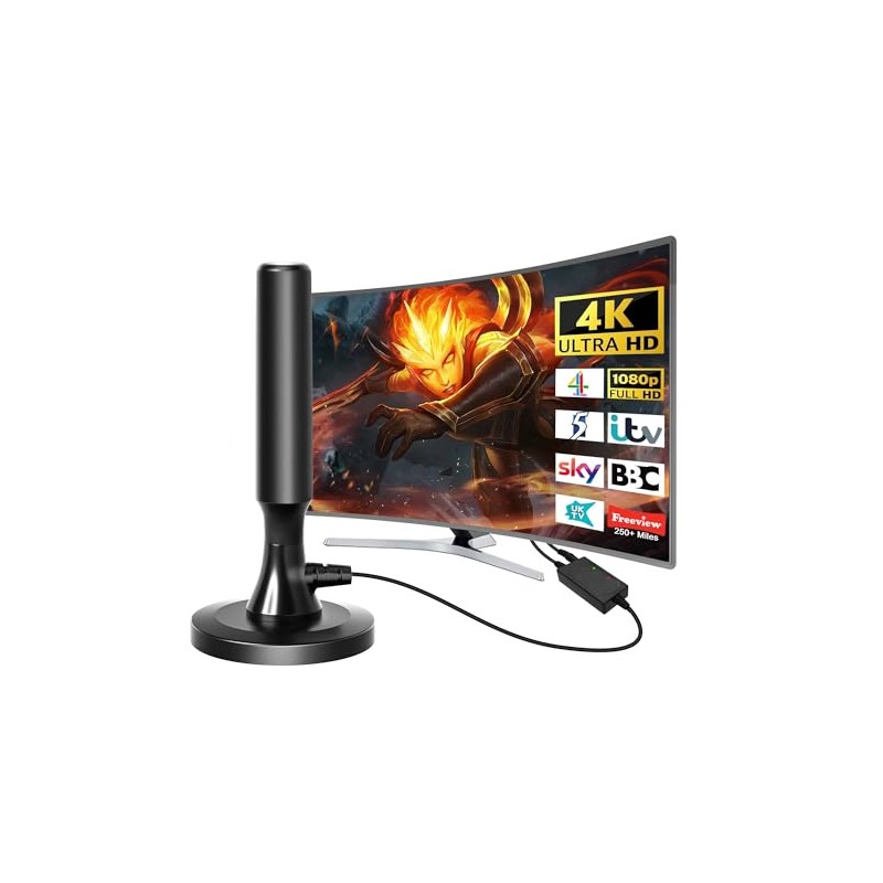 TV Aerial Indoor 250+ Miles Long Range - Amplified TV Antenna for Smart TV Support 4K 1080P All Local with Booster